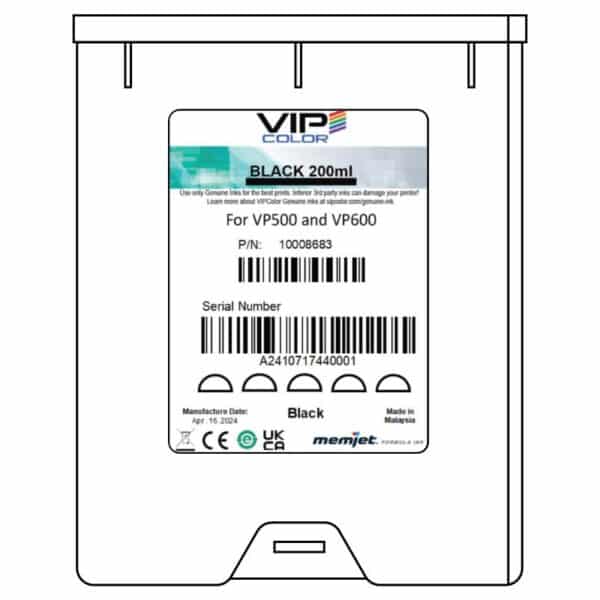 Black ink cartridge (200ml) for VIPColor VP500 and VP600.