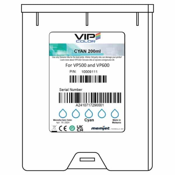 Cyan ink cartridge (200ml) for VIPColor VP500 and VP600.