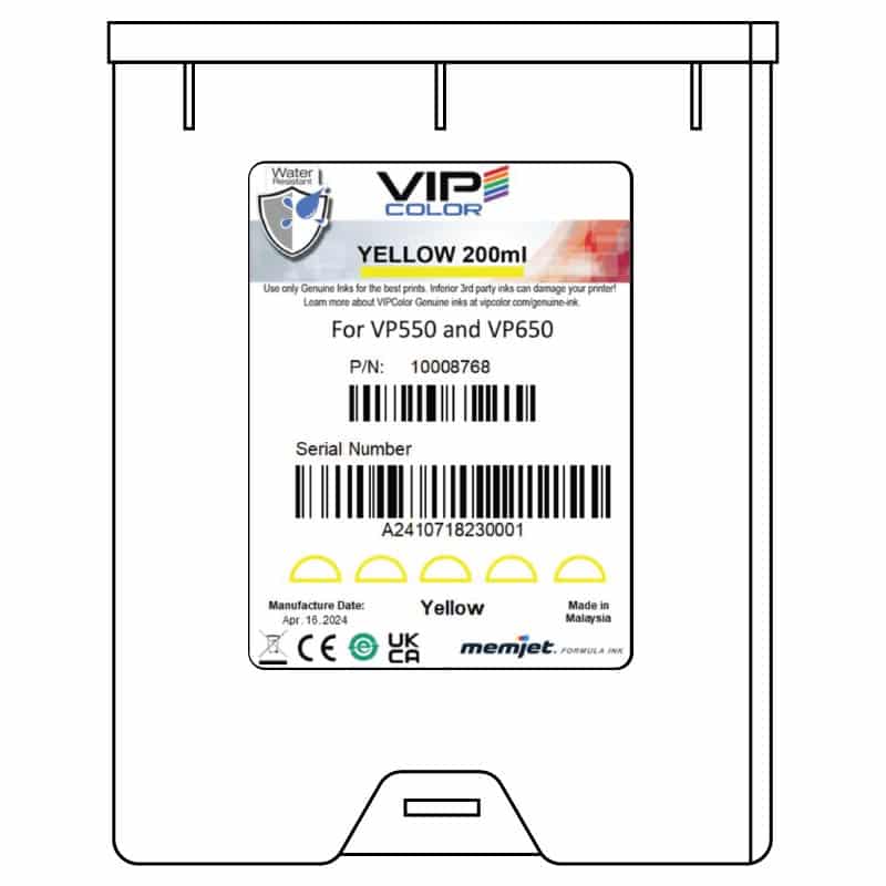 Yellow ink cartridge (200ml) for VIPColor VP550 and VP650.