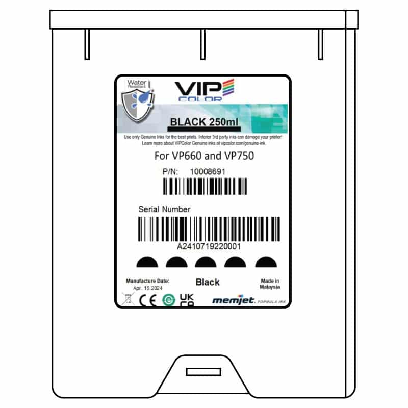 Black ink cartridge (250ml) for VIPColor VP660 and VP750.