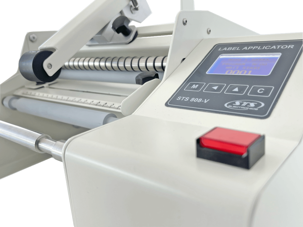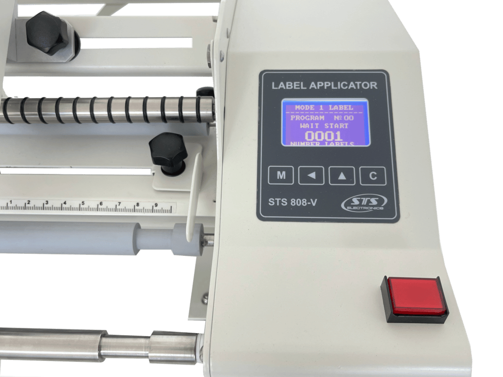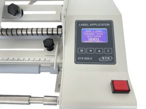 The STS808-V is a semi automated label applicator for bottles, cans, jars, and tubes. It can apply up to 2 labels on a cylindrical object – great for wine bottles with front and back label.