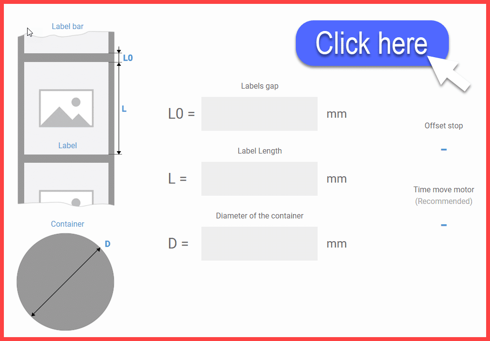 Use the Online calculator to determine the settings to use for accurate, consistent placement of label(s) on the bottle.
